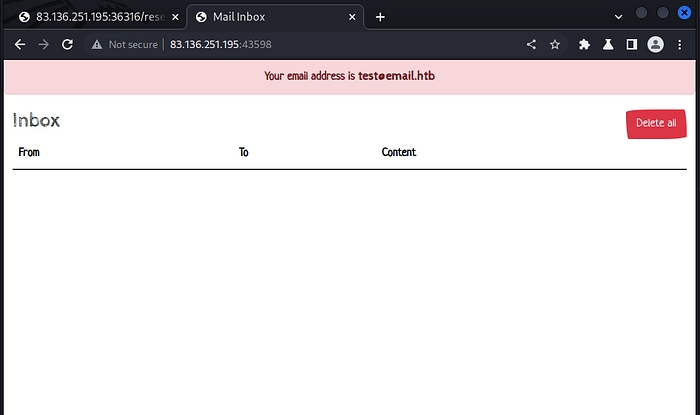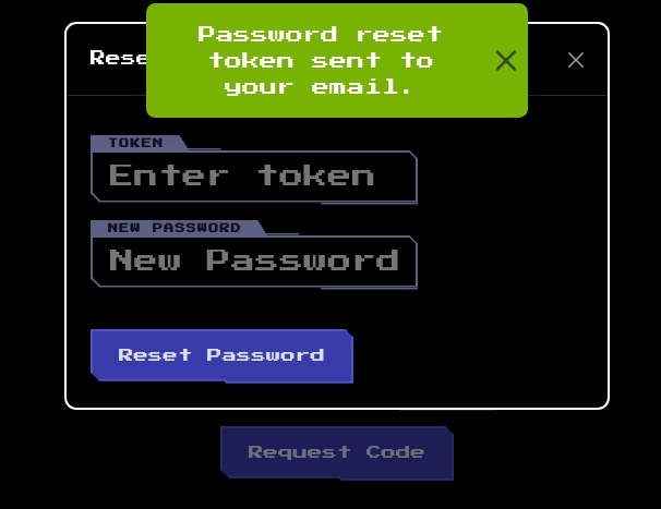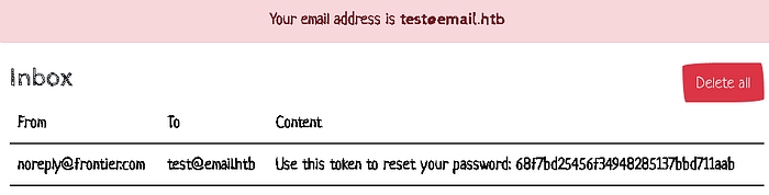 I entered the test email ([email protected]) in the input field and received a response indicating a token was sent to the mail inbox.