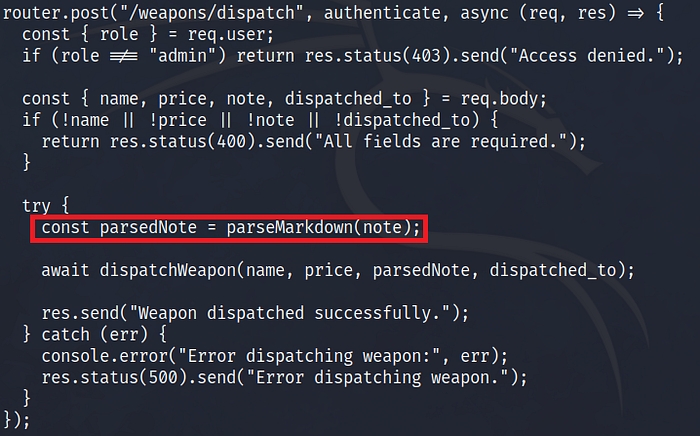 While analyzing the source code for the dispatch functionality, I noticed that the note input was passed to a function named parseMarkdown().