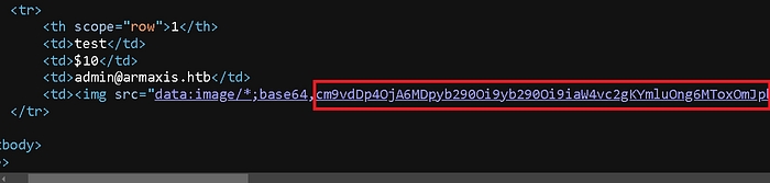 After submitting the form, the server returned a corrupted image with embedded data. Checking the page source revealed the base64-encoded contents of /etc/passwd.