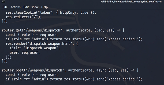 There didn’t seem to be many options initially, but further exploration of the source code revealed another page named /dispatch. but I get denied access when I try to open it because it is only for admin as you can see here: